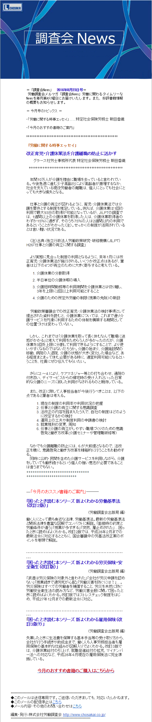 | P40で代表の新田が介護離職についてコメントしています。 |